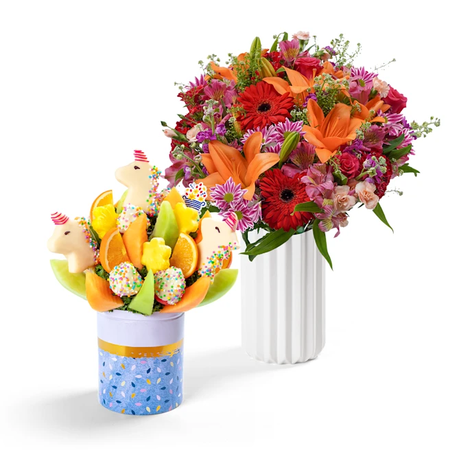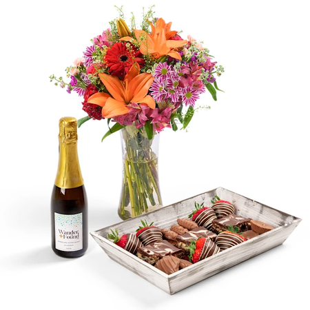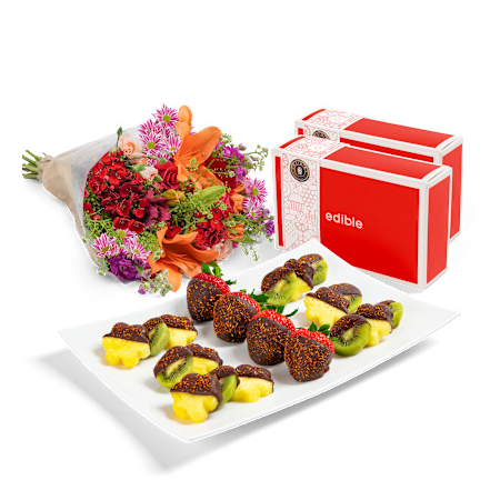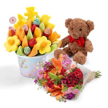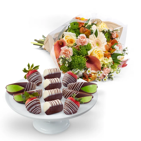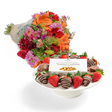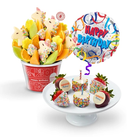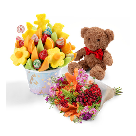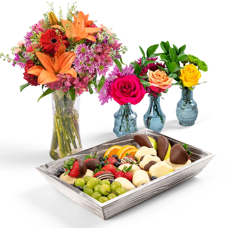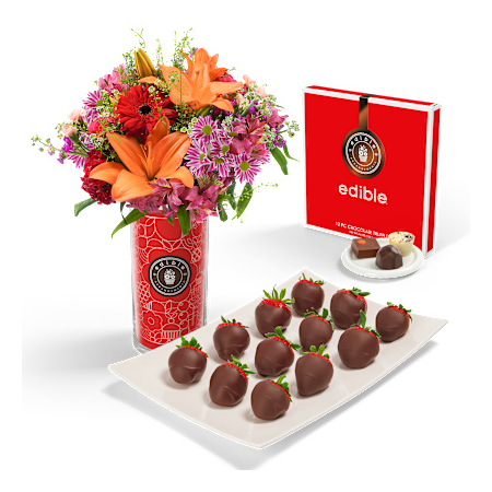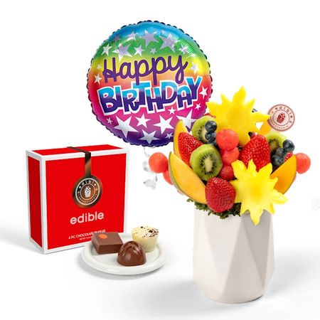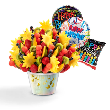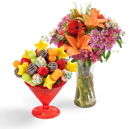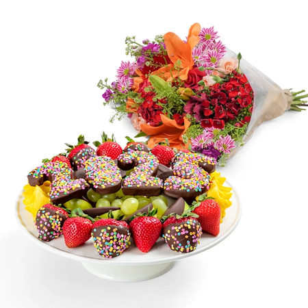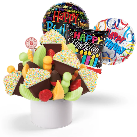 A gourmet gift shop offering a variety of fresh fruit arrangements, bouquets, baskets, and platters brimming with tempting delights such as chocolate-covered strawberries, assorted dipped fruits, cookies, and other enticing desserts. Complemented by flowers, bakery items, balloons, and gifts, we are perfect for birthdays, anniversaries, or just indulging oneself.